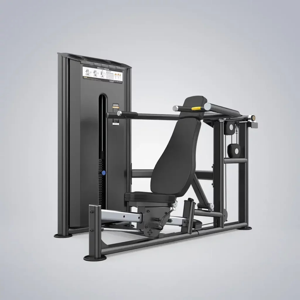 Chest & Shoulder Press z serii EVOST III łączy w sobie funkcje trzech urządzeń w jednym. Użytkownik może regulować ramię dociskowe i siedzisko urządzenia, aby wykonywać wyciskanie na ławce, skośne wyciskanie w górę i wyciskanie na barki. Siedzisko i poduszka oparcia zostały ergonomicznie zoptymalizowane, aby zapewnić lepsze wsparcie i komfort. Wygodne, duże uchwyty w kilku pozycjach, w połączeniu z prostą regulacją siedziska, pozwalają użytkownikom na łatwe wykonywanie różnych ćwiczeń.