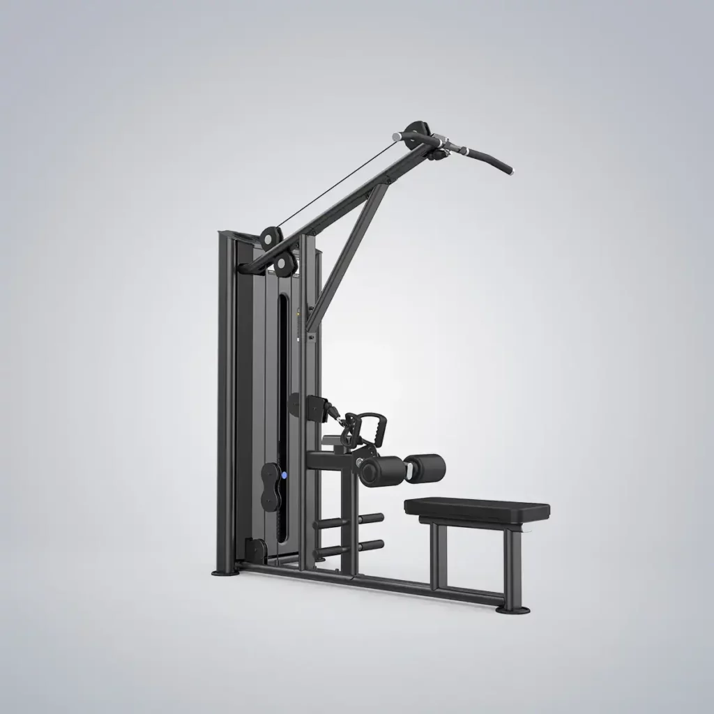 Maszyna EVOST III z serii Lat & Pulley to dwufunkcyjna maszyna z pozycjami do przyciągania lat i średniego wiosłowania. Posiada łatwo regulowaną wyściółkę przytrzymującą uda, przedłużone siedzisko i listwę przypodłogową, aby ułatwić oba ćwiczenia. Bez opuszczania siedzenia można szybko przełączyć się na inny trening, dokonując prostych regulacji, aby zachować ciągłość treningu.